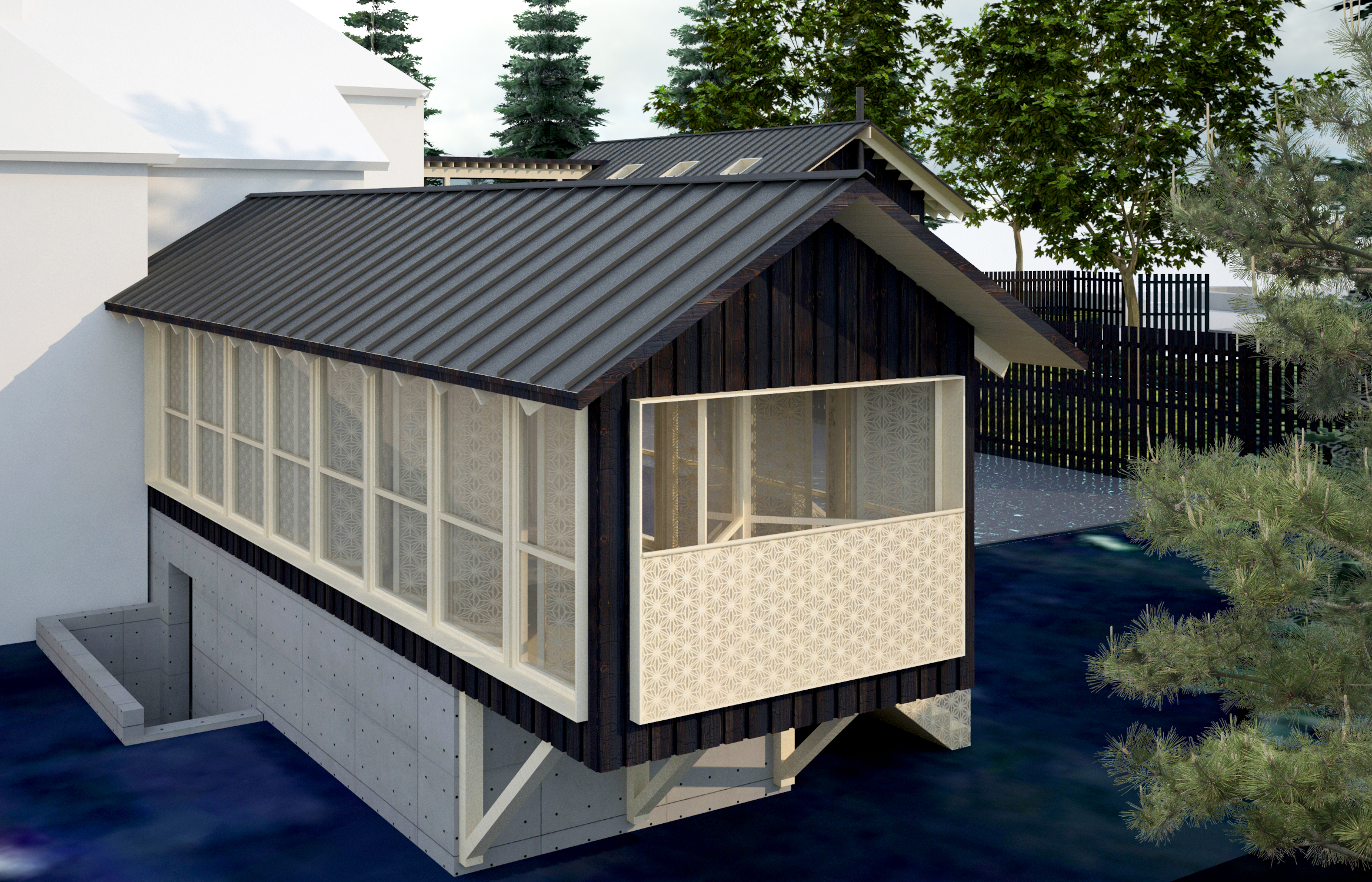 La difficulté pour ce lieu était d’unir le victorien anglais de l’ancien manoir au zen japonais de sa nouvelle expérience. Le concept pour l’ensemble du développement du complexe qui fut développé est celui des « spectacles d’intimité » venant travailler sur le lien qui unit autant que différencie les victoriens et les Japonais dans leur rapport à l’intimité et la manière que cela structure l’architecture d’un lieu. Parmi plusieurs éléments de ce rapport à l’intimité, il y a entre autres les rapports hiérarchiques des classes ainsi que la structuration des espaces conséquente, la culture du thé, celle des salons, celle des entre-espaces ainsi que celle des jardins et de la déambulation, l’utilisation du bois, et il y a finalement cette tension entre voir et être vu, ainsi que tous les dispositifs architecturaux qui nourrissent ce rapport.